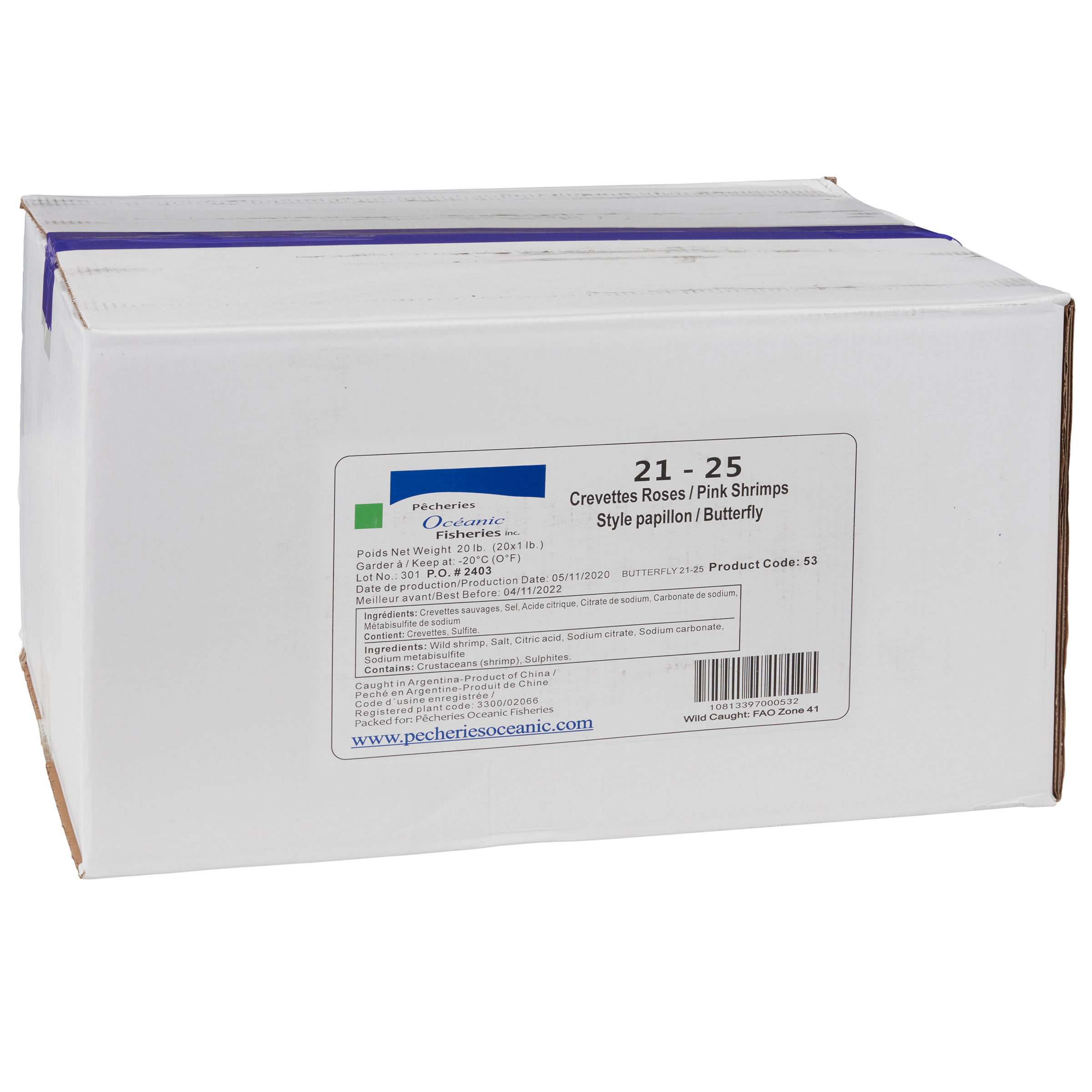 • Allergens : Shrimp (crustaceans), sulphites