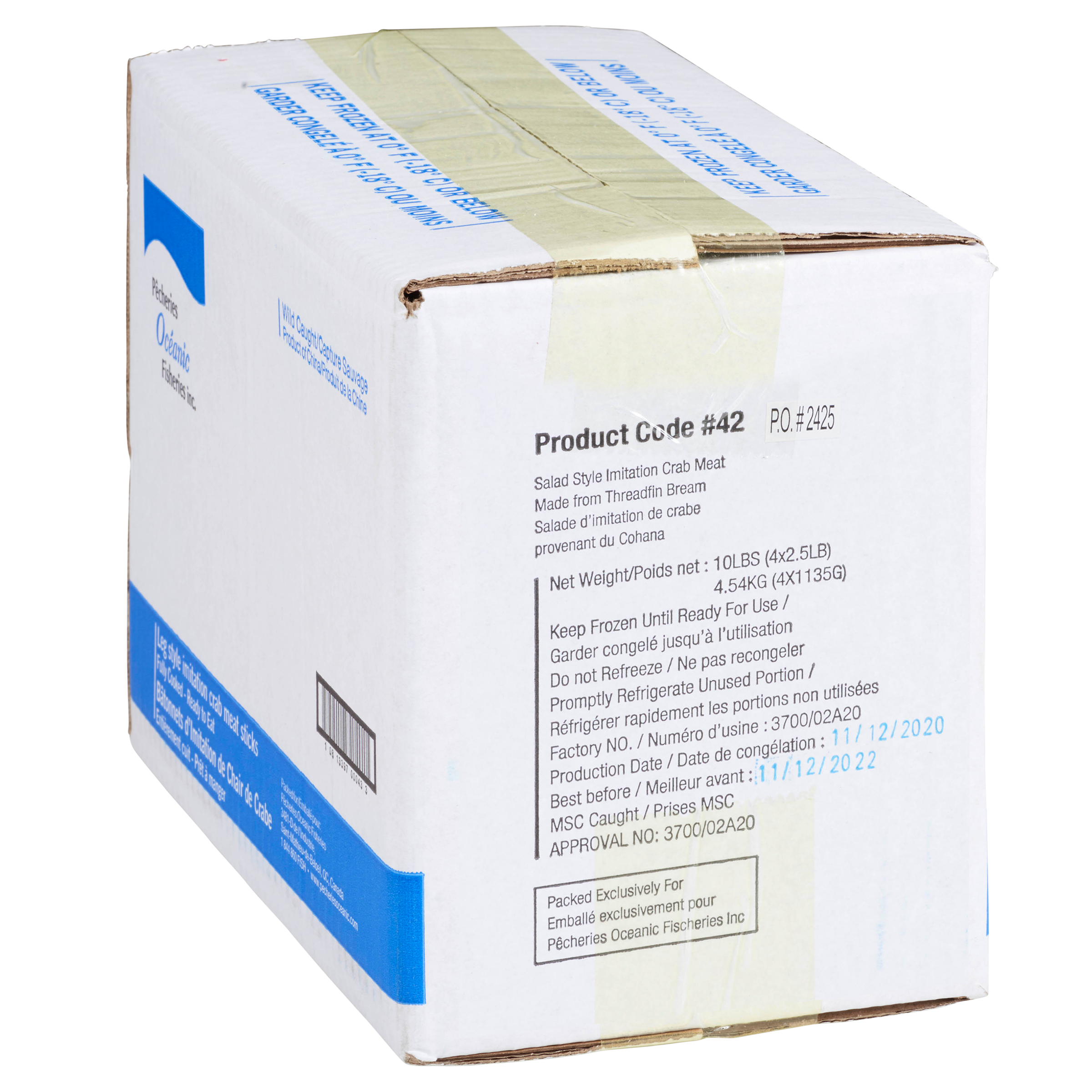 • Ingredients : Threadfin bream, water, soybean protein, tapioca starch, potato starch, egg white, sugar, salt, soybean oil, crab extract, disodium 5’Ribonucleotide (L+G), artificial crab flavor, sodium tripolyphosphate, cochineal, paprika